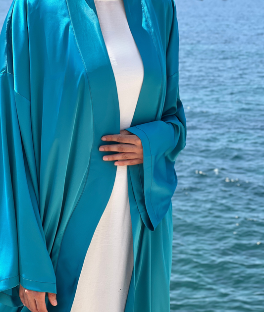 KIMONO BLEU SATIN DE SOIE